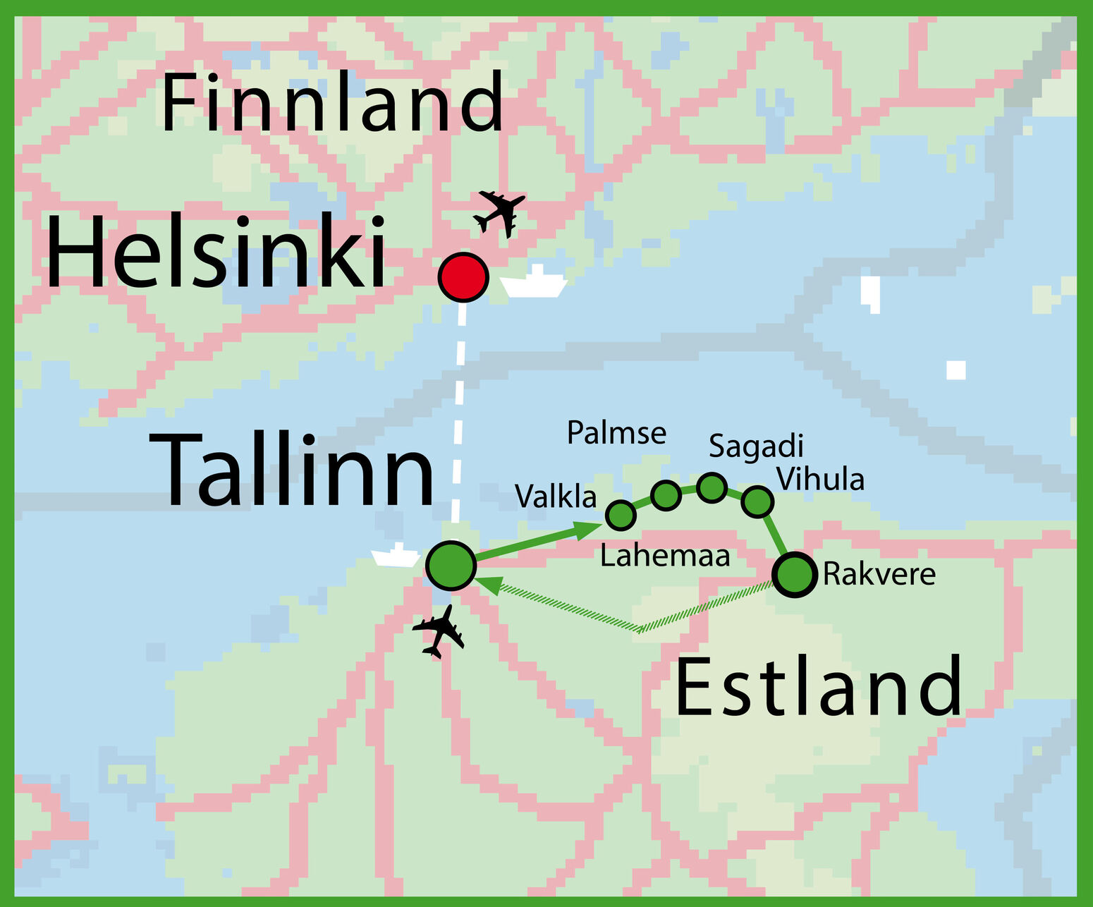 Eine schöne Radtour in den ältesten Nationalpark des Baltikums, dem Lahemaa Nationalpark. Diese 7-tägige Tour führt Sie von Tallinn zu den Gutshöfen Palmse, Sagadi und Vihula, zur U-Boot-Basis Hara, zum Strand von Karepa, zur Burgruine Toolse und nach Rakvere mit der gewaltigen Ordensburgruine. Malerische Küsten, Wälder und Naturpfade erwarten Sie.