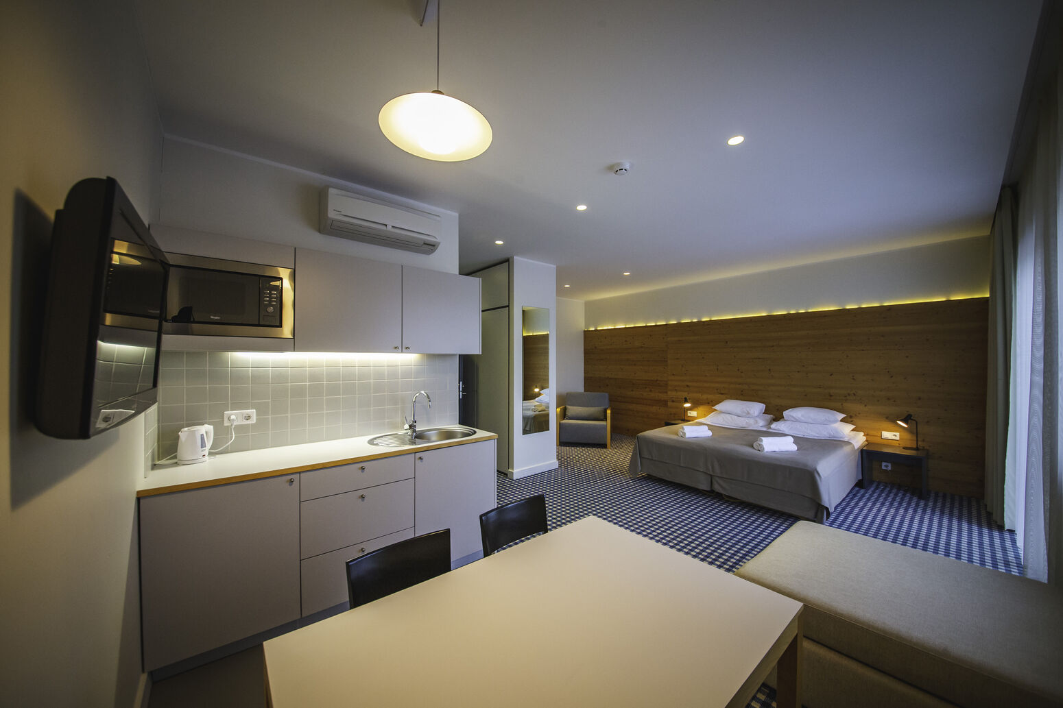 Das Kassari Resort verfügt über insgesamt 15 geräumige Zimmer sowie ein Gästehaus mit 4 Zimmern. Alle Zimmer sind mit Kitchenette, Bad mit DU/WC, Haartrockner, Safe, TV und Balkon ausgestattet.