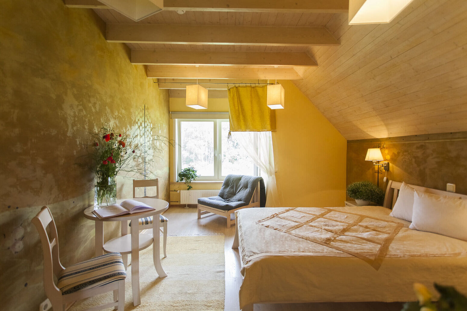 Gästehaus an der estnischen Westküste, ca. 20 km südlich von Haapsalu, ca. 3 km vom Meer, nicht weit vom Matsalu Nationalpark. Die Umgebung besteht aus Auen, flachen Küsten, Mooren und Inseln. Ideal zur Vogelbeobachtung.