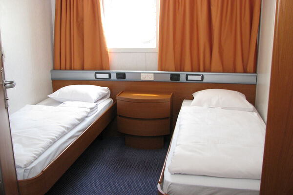Behindertenfreundliche Außenkabine auf Deck 6. Hierbei ist zu beachten, dass es keinen Aufzug vom Autodeck aus gibt, nur über eine längere Fußgängerbrücke. Einen Fahrstuhl gibt es von Deck 4 - 6. Ein Baierrefreier Zugang zum/vom Schiff ist möglich.