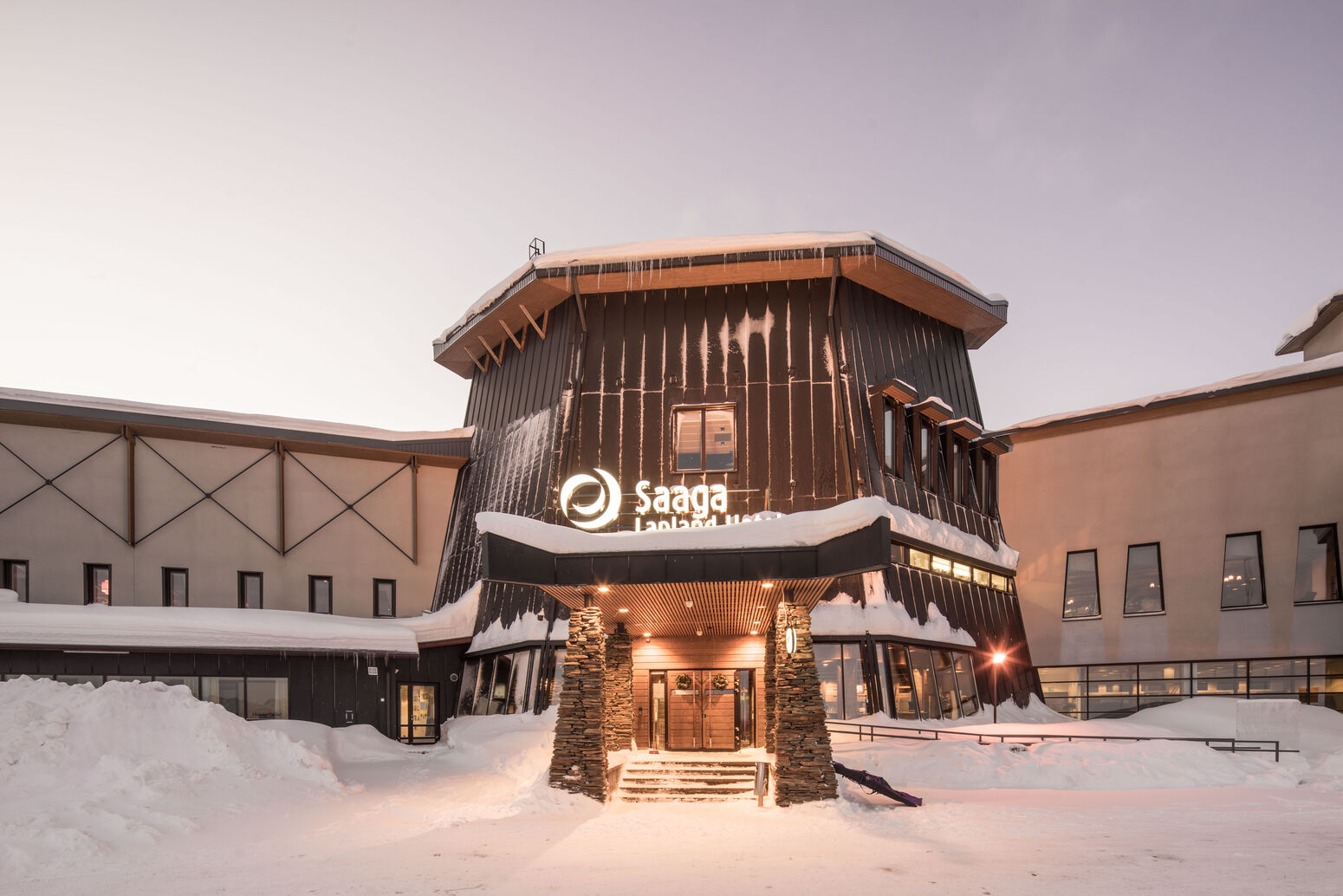 Das Lapland Hotel Saaga liegt an einem Berghang oberhalb von Ylläsjärvi, ca. 40 km vom Flughafen Kittilä entfernt. Gleich neben dem Hotel befinden sich der Skilift und viele Pisten und Loipen des Wintersportzentrums Ylläs.