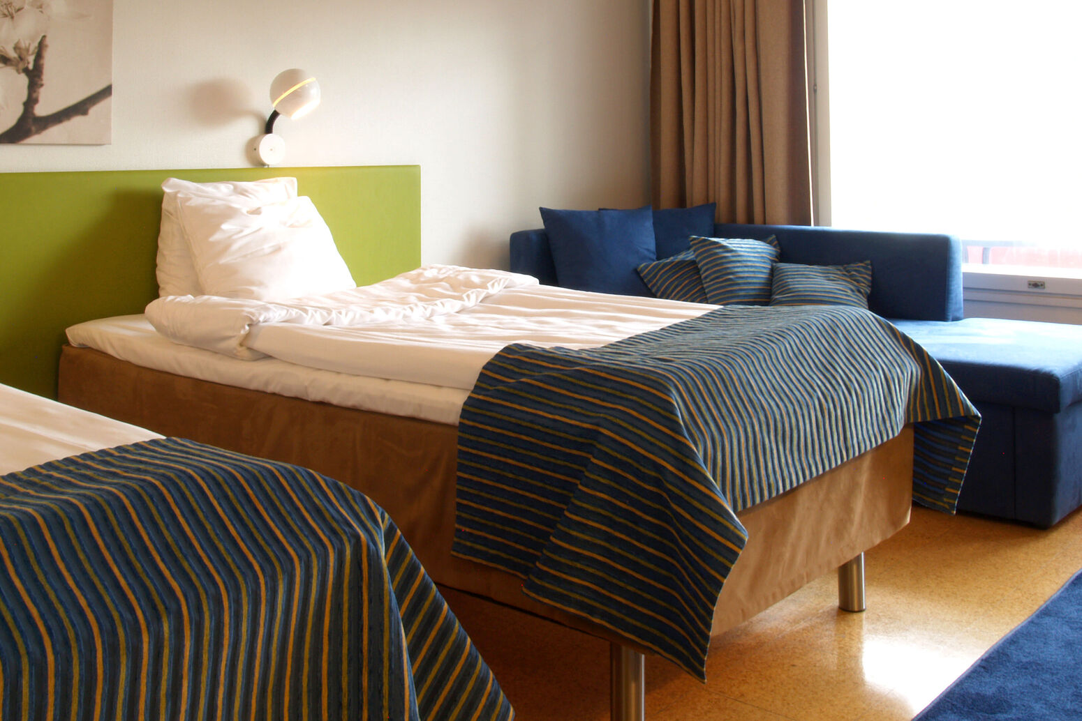 Die 81 Zimmer des Spahotels Casino haben allesamt ein Bad mit DU/WC, eine Klimaanlage, Flachbild-TV, Telefon und WLAN. Viele der Zimmer haben Seeblick und einen Balkon. Das Hotelrestaurant serviert u.a. skandinavische Küche.