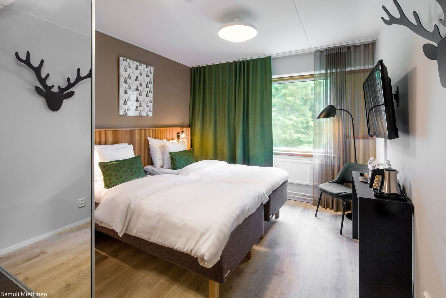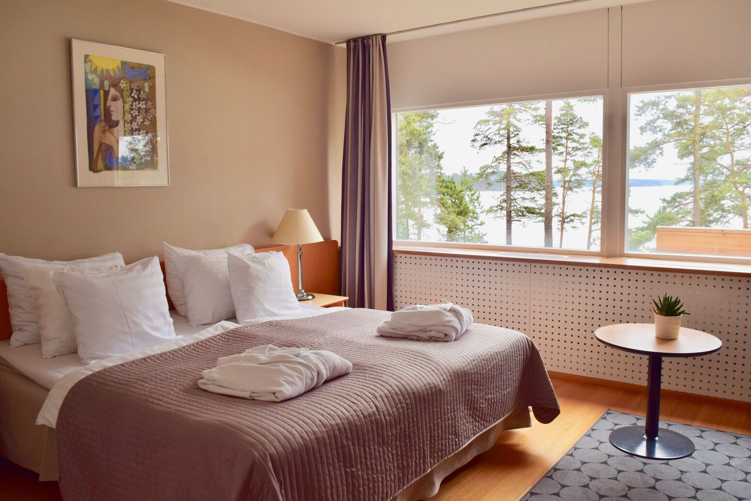 Das Hotelgebäude ist in klassischem finnischen Design gehalten, mit modernen Holz-, Glas- und Klinker-Elementen. Die 70 Zimmer des Hotels Rantapuisto bieten DU/WC, Schreibtisch, Telefon, WLAN und Flachbild-TV. Vom Zimmer haben Sie entweder Meer- oder Waldblick.