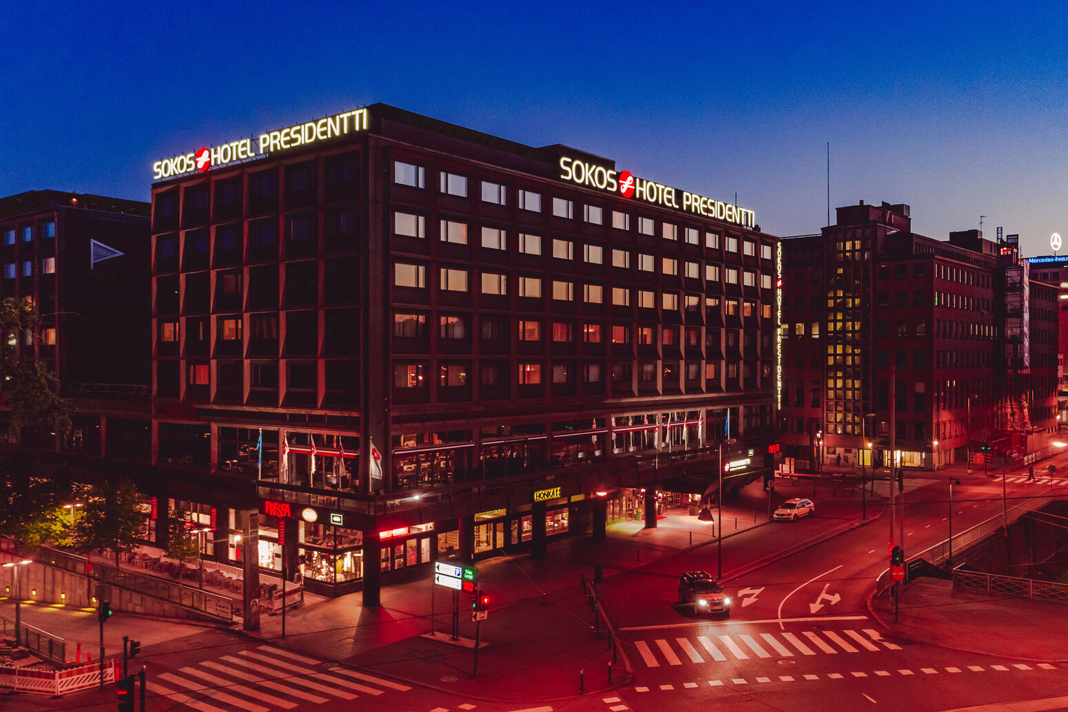 Das Hotel Sokos Presidentti wurde nach einer Komplettrenovierung im Herbst 2018 neu eröffnet und liegt im Zentrum von Helsinki, gleich in der Nähe des Kaufhauses Kamppi und ca. 500 m vom Hauptbahnhof Helsinki entfernt.