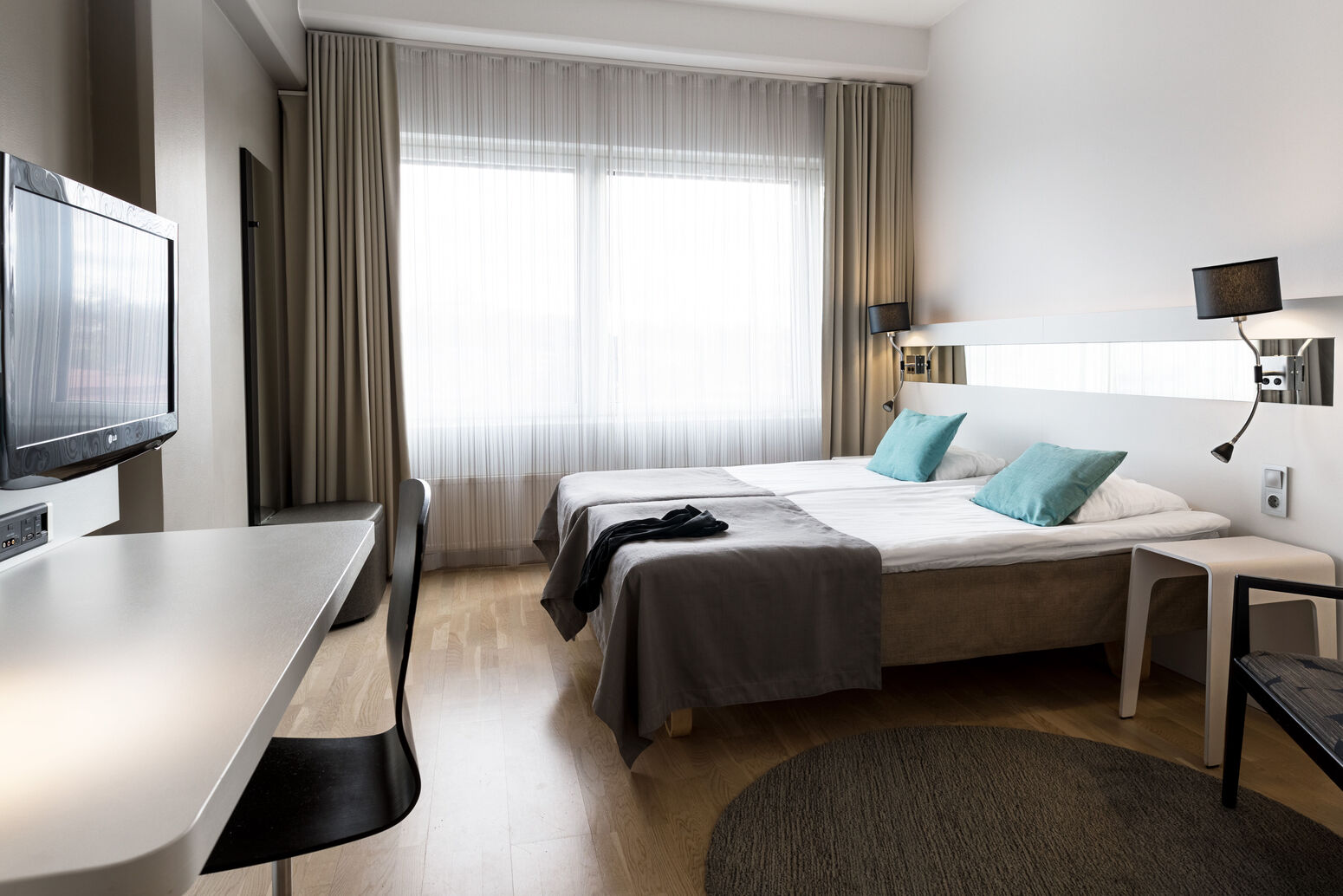 Die 155 Zimmer des Hotels Scandic Julia verfügen über DU/WC, Klimaanlage, Minibar, Safe, Schreibtisch, Holzböden, Flachbild-TV, Telefon und WLAN. Das Restaurant-Bistro Julienne serviert finnische und internationale Speisen.