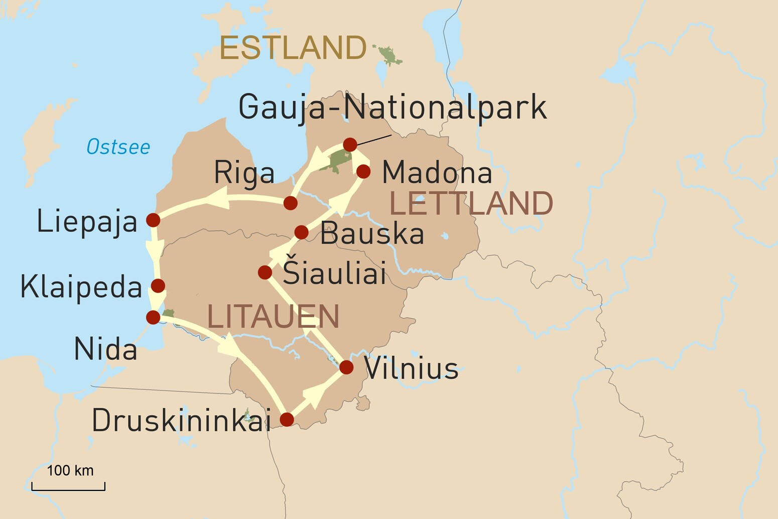 Entdecken Sie das Baltikum in seiner ganzen Vielfalt – von Riga über Liepāja bis in das historische Klaipėda. Erleben Sie die Dünen der Kurische Nehrung und das lebendige Flair von Vilnius. Staunen Sie am Berg der Kreuze und im Barockschloss Rundāle, bevor Sie im Gauja-Nationalpark eindrucksvolle Natur und mittelalterliche Burgen erwarten.