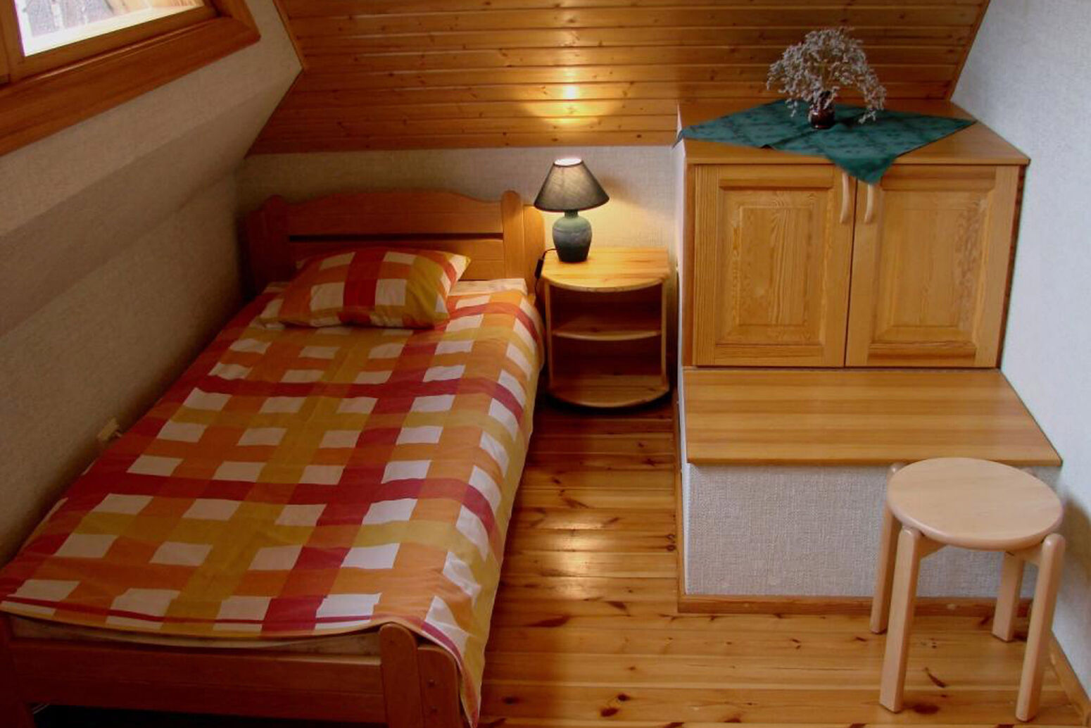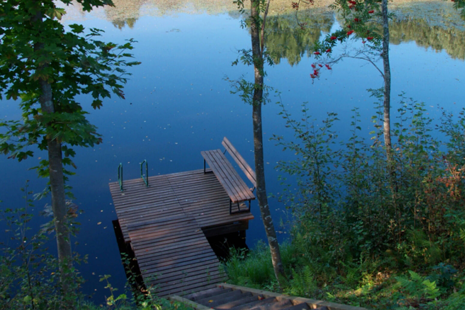 Erstes Schlafzimmer mit Doppelbett und eigenem Bad. Zweites Schlafzimmer mit 2 Einzelbetten. Terrasse mit Blick zum See. Gartengrill. Nichtraucherhaus. Die Gastgeber wohnen in einem Nachbarhaus. Im Preis eingeschlossen: Sauna, Angeln im See und Boot.