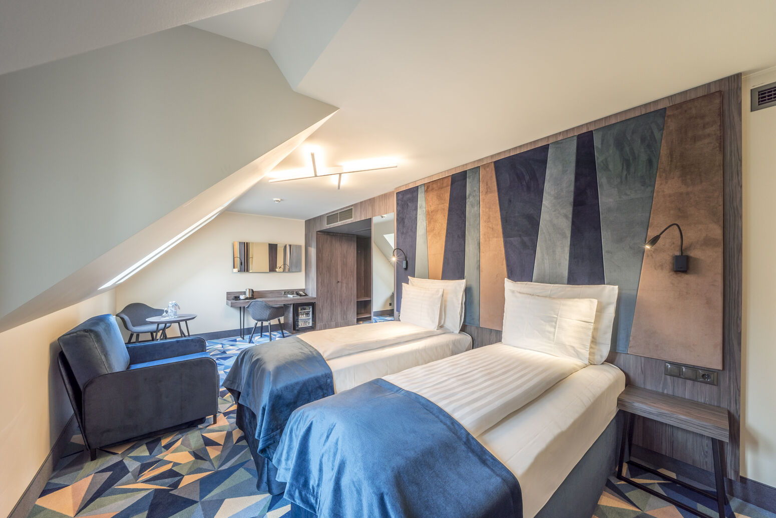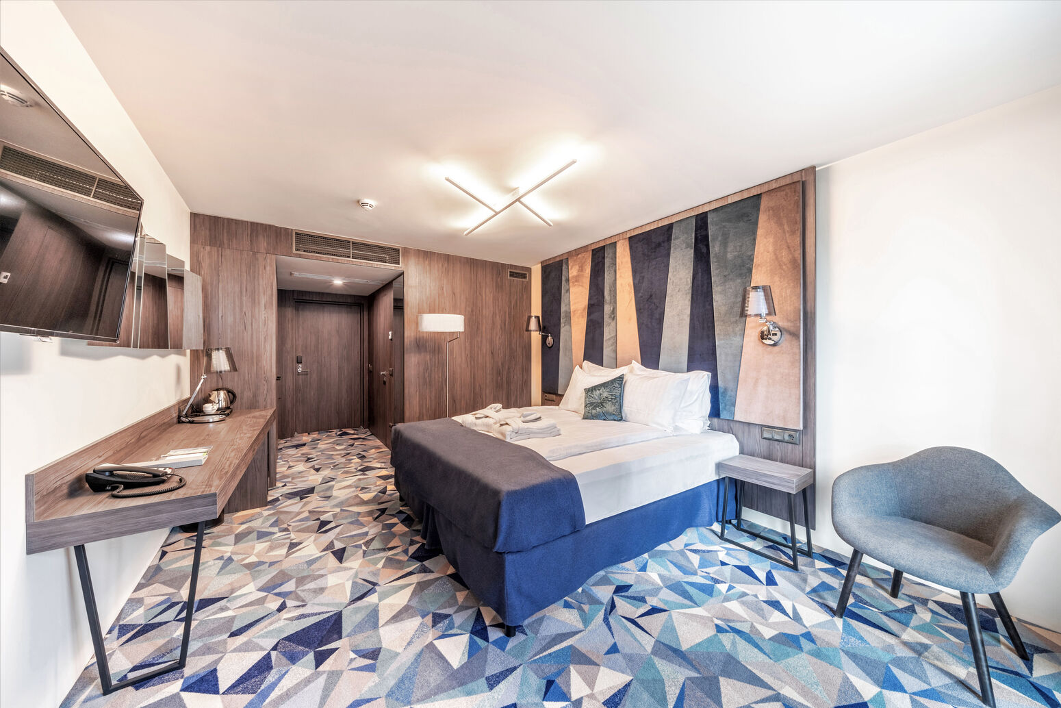 Das Wellton Riverside Spa Hotel bietet 222 schallisolierte Zimmer an, teilweise mit Dachschrägen. Alle Zimmer sind mit SAT-TV, Minibar, Safe, WLAN-Internetzugang und Bad mit DU/WC ausgestattet.