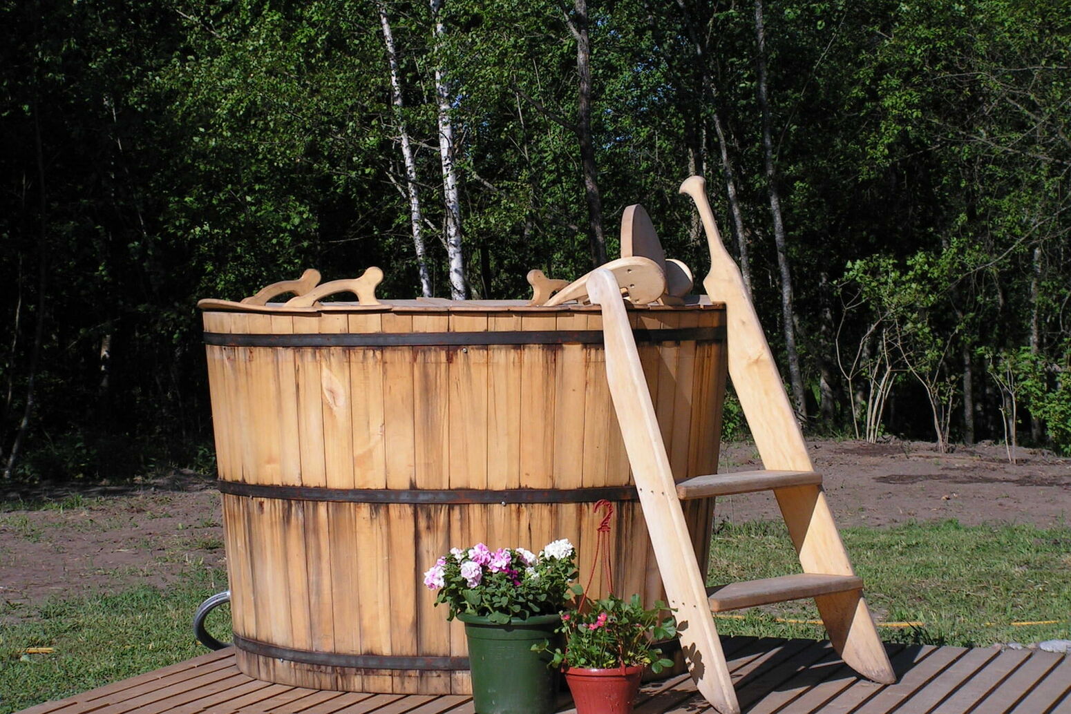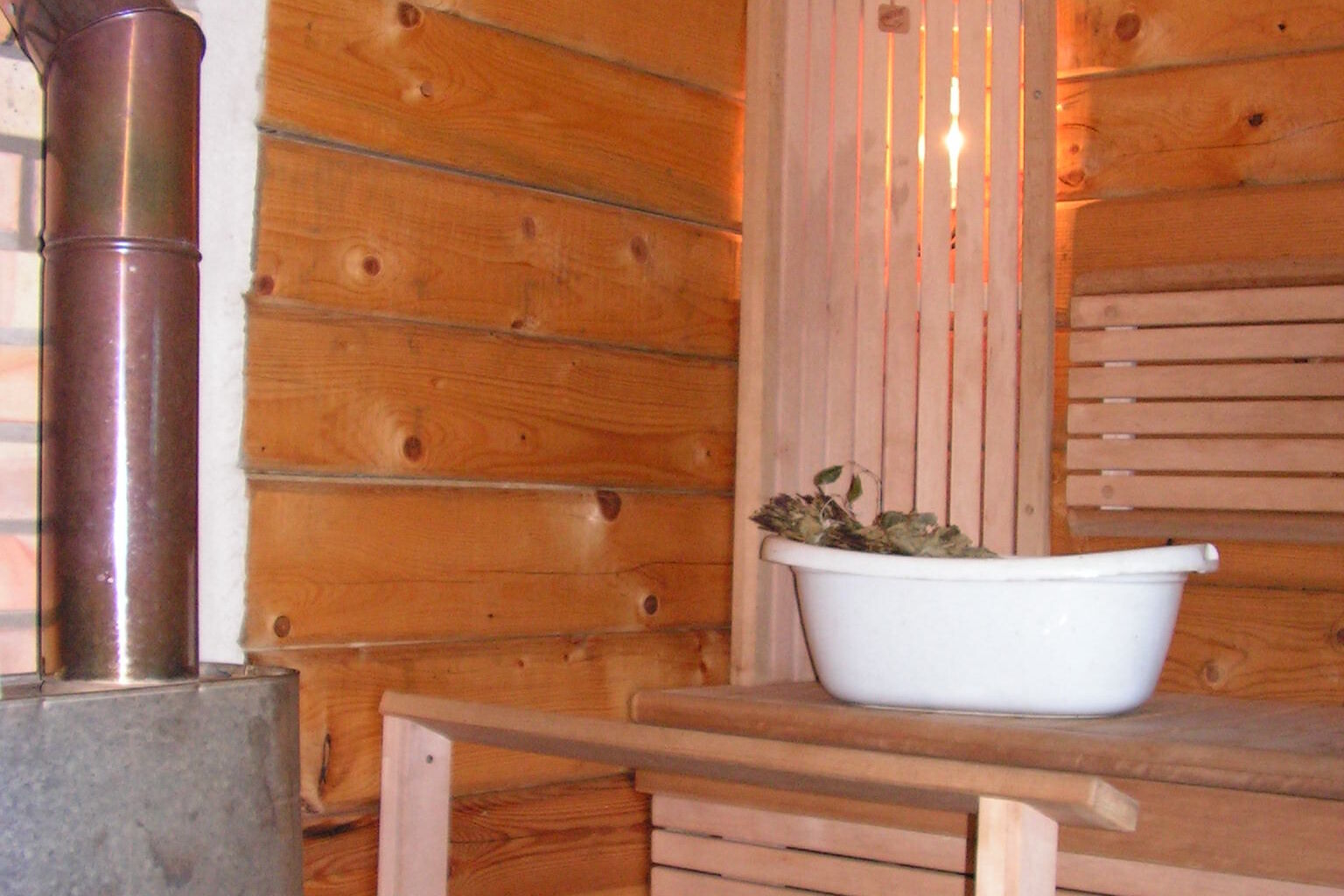 Traditionelle Rauchsauna kann vor Ort dazu gebucht werden.