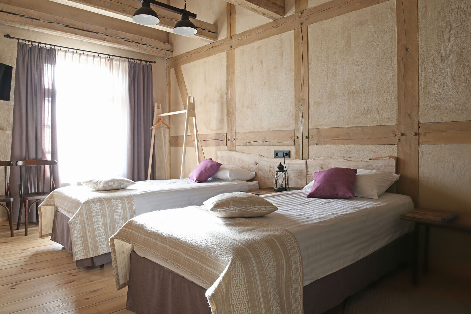 Das Gutshaushotel verfügt über 16 individuell eingerichtete Zimmer, die auf mehrere Gebäude aufgeteilt sind. Alle Zimmer bieten Eichenholzmöbel, ein eigenes Bad mit DU/WC, Sat-TV und WLAN.