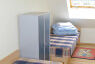 1 kleines Schlafzimmer mit zwei Einzelbetten.