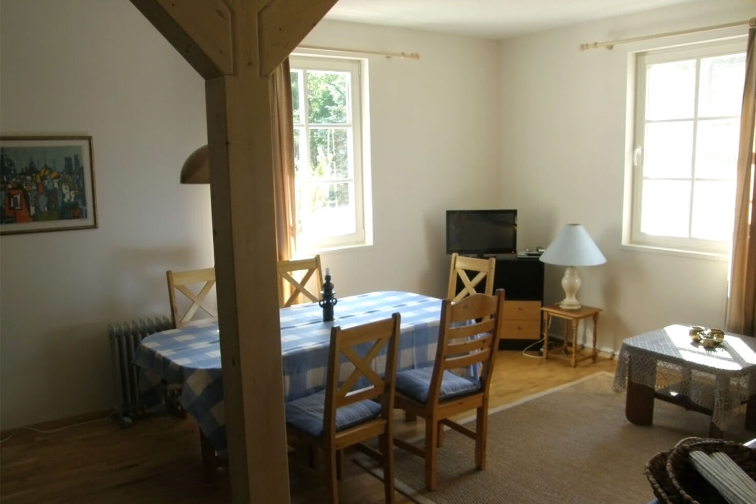 Das Fischerhaus wurde 2010 auf altem Fundament neu errichtet und liegt direkt am Haff. Garten und Ruhewiese mit Gartenmöbeln zum Haff, der von den Gästen mitgenutzt werden kann. Öffentliche Parkplätze direkt am Haus. Der deutsche Eigentümer lebt seperat im Haus und vermietet eine Einliegerwohung von ca. 35 qm mit einem Schlafzimmer mit Doppelbett und einem Wohnbereich mit Küchenzeile mit 2-Herdplatte und Schlafsofa.