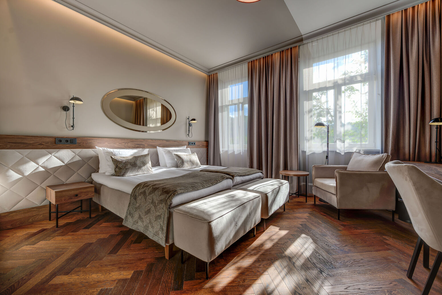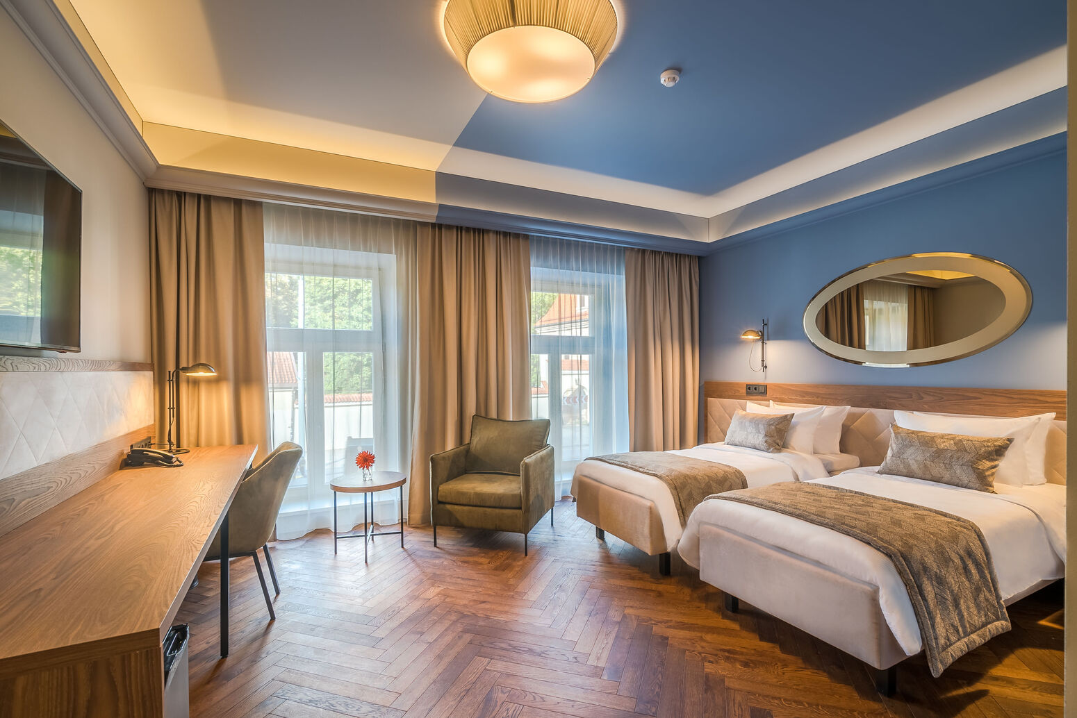 Die 79 Zimmer des Hotels Vilnia verteilen sich auf die Kategorien Classic, Superior, Junior-Suite und Suite. Alle Zimmer sind mit einem Bad mit DU/WC oder Badewanne, Föhn, Klimaanlage, Minibar, Safe, Flachbild-TV, Telefon und WLAN ausgestattet. Manche der Superior-Zimmer bieten auch einen Balkon.