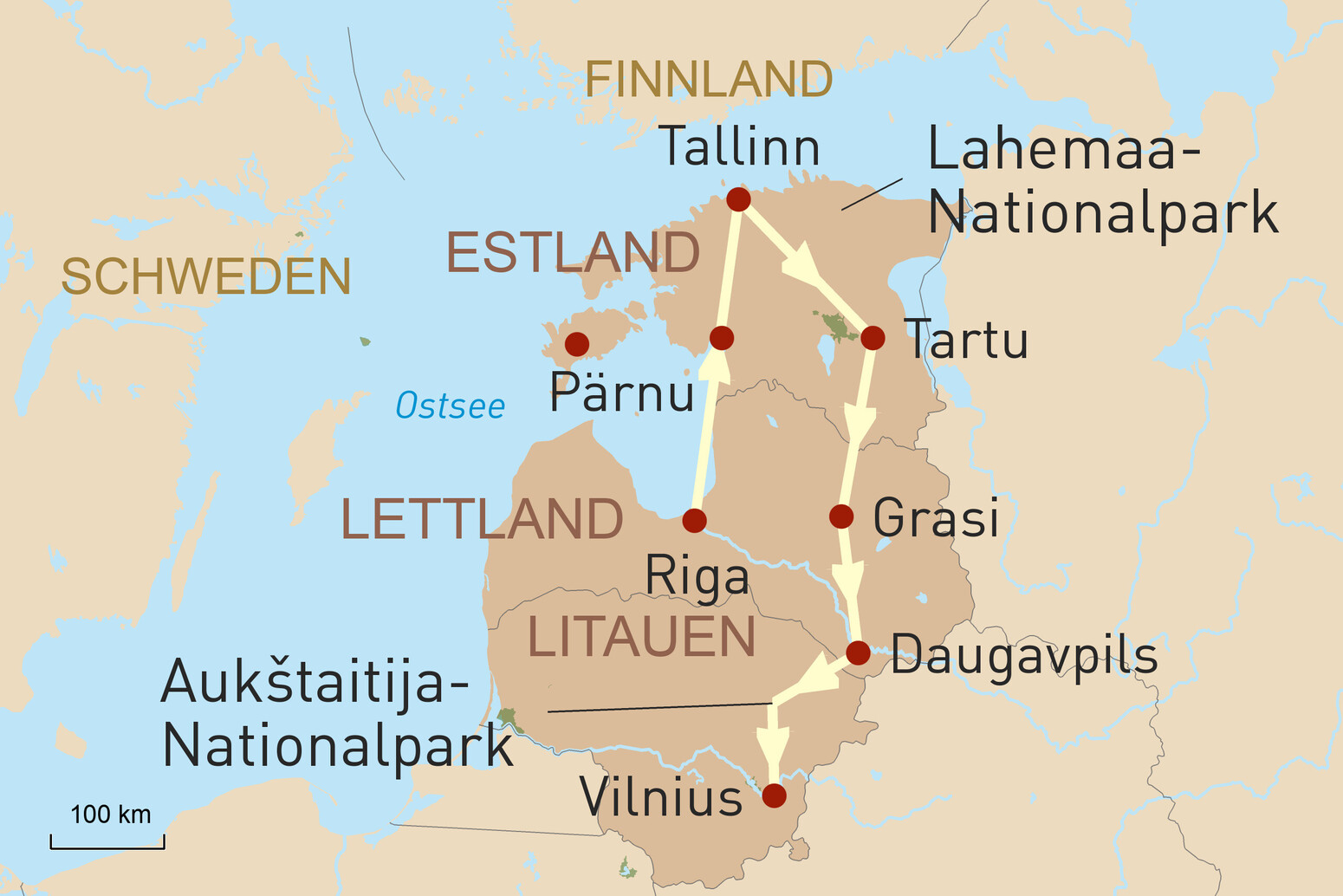 Während dieser geführten Busreise erhalten Sie einen abwechslungsreichen Überblick über Estland, Lettland und Litauen. Sie entdecken Tallinn, Vilnius und Riga und lernen traumhafte Nationalparks sowie die Städte Tartu und Daugavpils kennen.