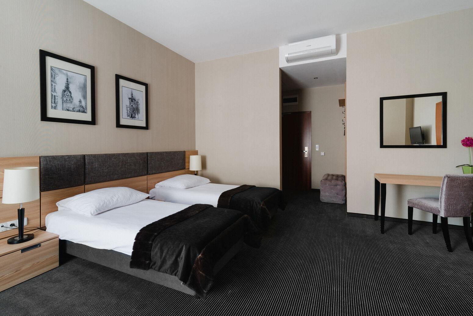 Das Hotel bietet 85 Zimmer, darunter zwei Wohnappartements. Jedes Zimmer verfügt über ein eigenes Bad mit Dusche oder Badewanne, Klimaanlage, Schreibtisch, Safe, Tee- und Kaffeezubereitungsset sowie LCD-Fernseher, Telefon und WLAN.